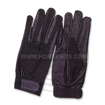 RIDING GLOVES, LEATHER PALM, COOL MESH BACK, FINGER REINFORCEMENT, ELASTIC VELCRO CLOSURE